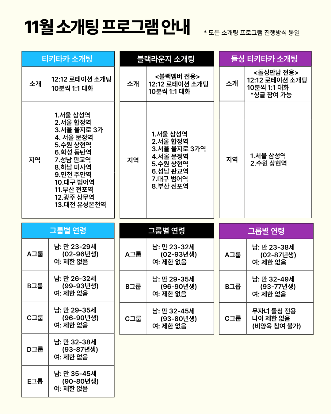✦ 한번에 최대 12명과 소개팅 (법적 미혼 남여만 참여 가능)