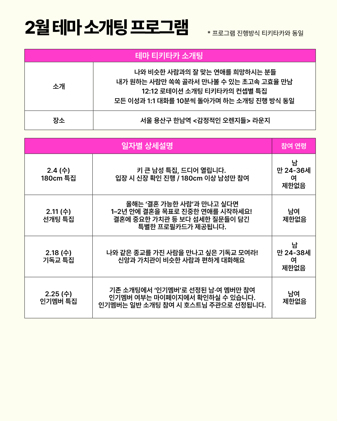 ✦ 날짜별 참여, 나이 확인 필수 (로그인 후 선택 옵션 확인)