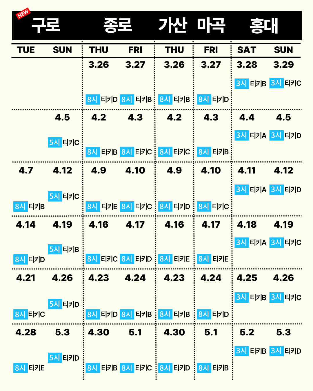 📅 매주 화요일 8시, 일요일 5시